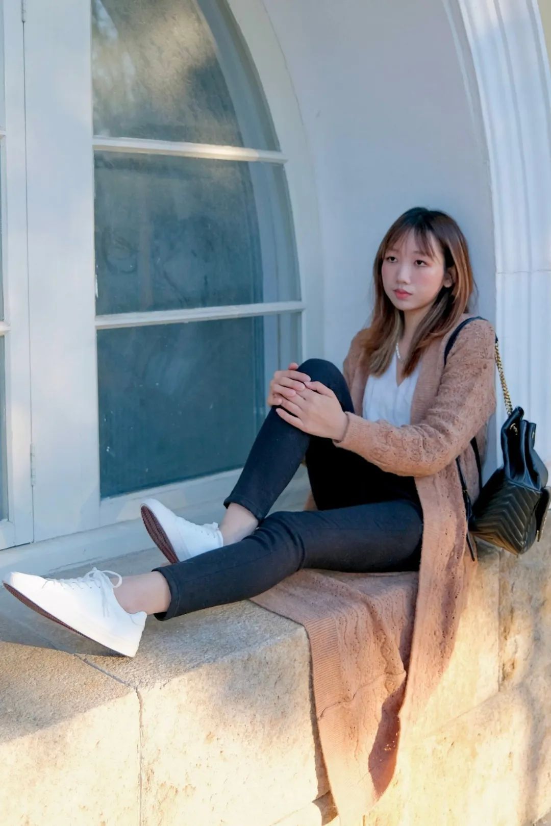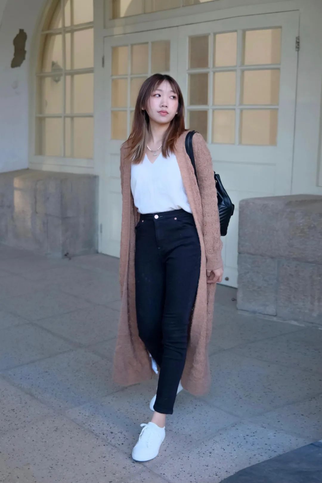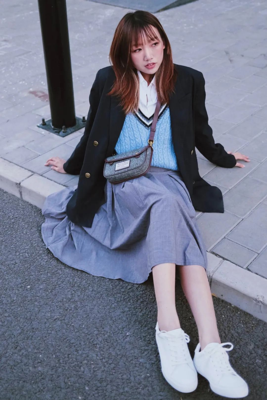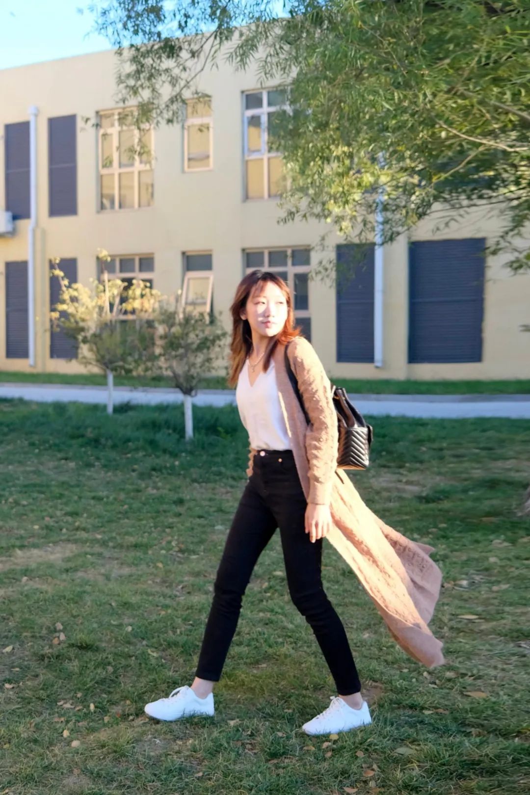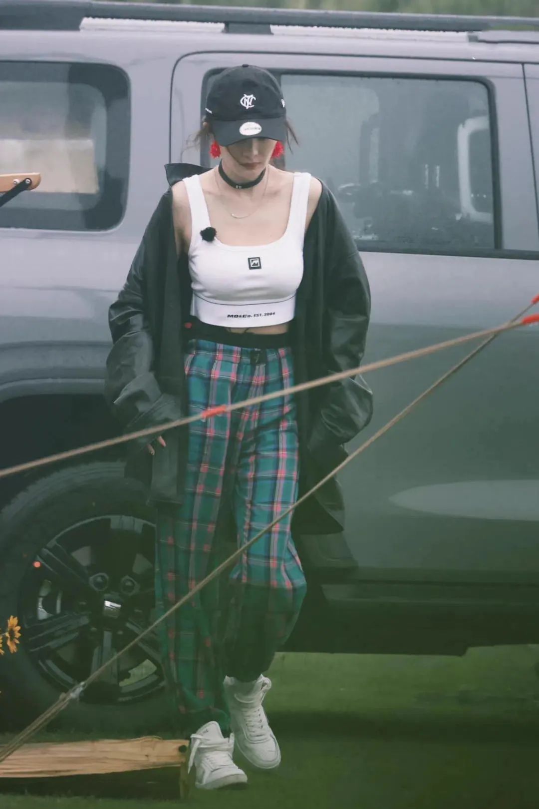 下半身搭一条紧身裤,再踩双老爹鞋,显瘦又显高。