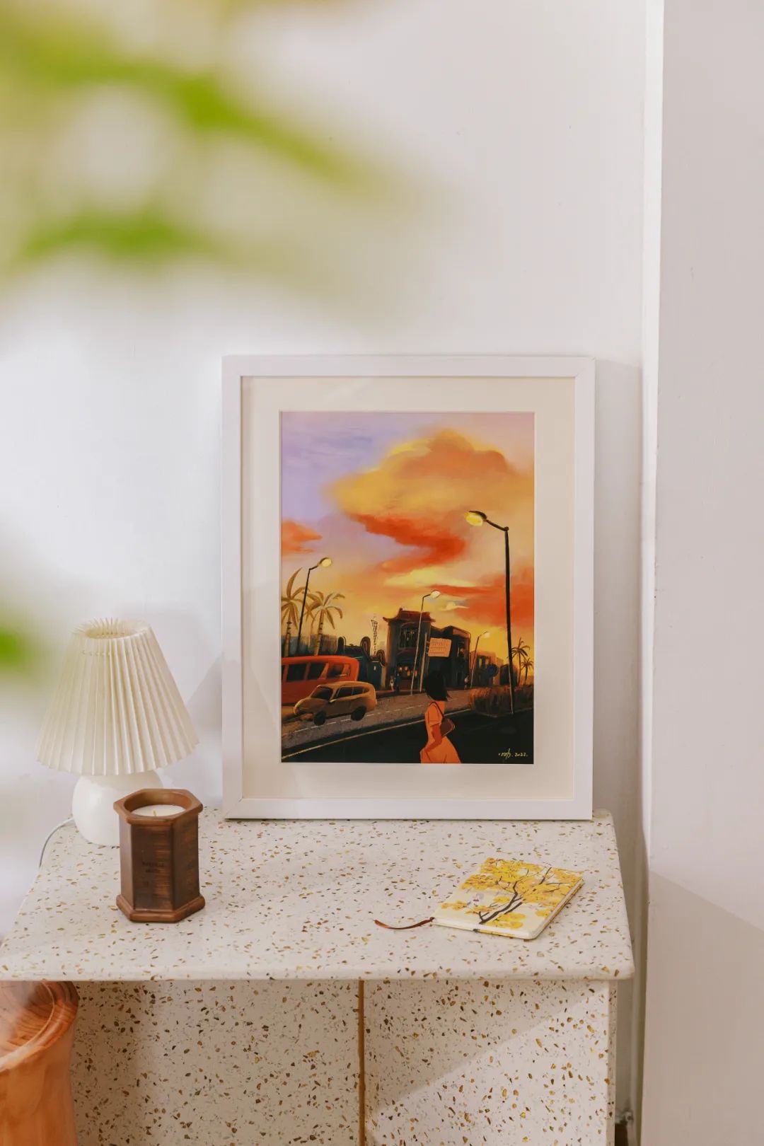 我已经不记得那天为什么不开心了,但记住了那天美丽的夕阳。于是把那天的场景画了下来,