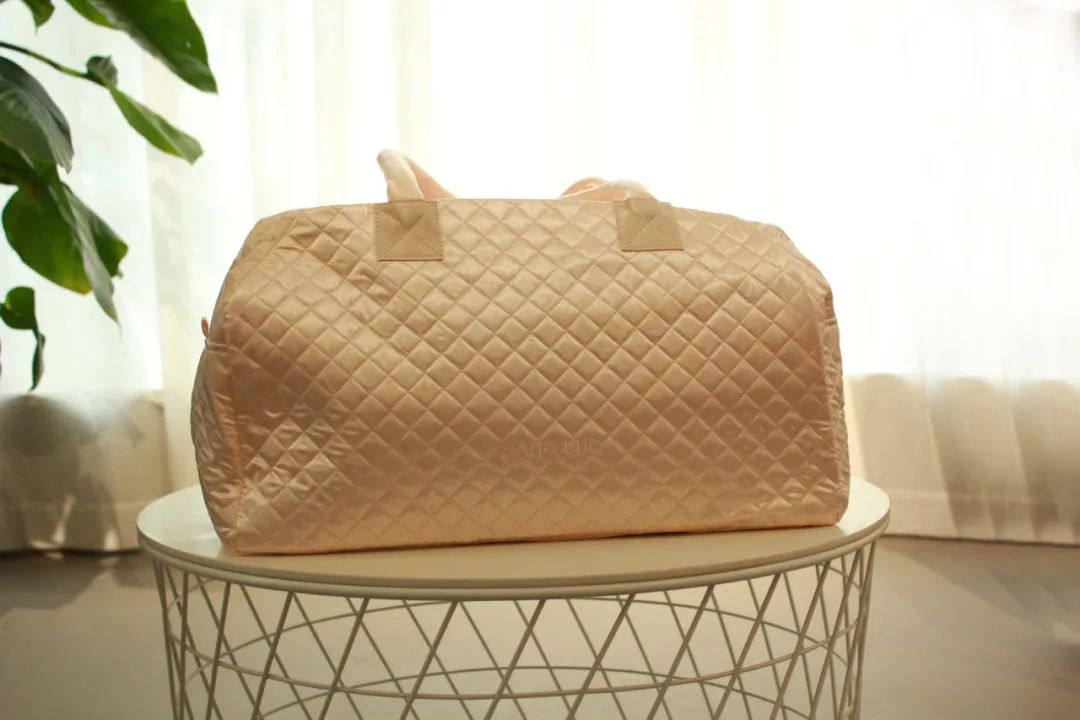 欧根纱包包外面,是一个粉色的旅行包包。同样是颜值爆棚的一款包,很适合女孩子作为健身包使用。也可以变成很cool的出街包包,配上一款T-shirt或者裙子,走在街上,你肯定是那个最特别的女孩!
