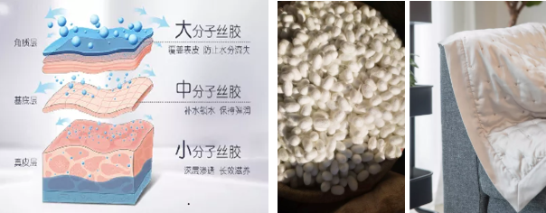 丝胶蛋白是一种防御蛋白成分,它的小分子可以迅速渗透入角质层,肌肤逐渐变得柔软,保湿效果非常好,被称为护肤界的黑科技。