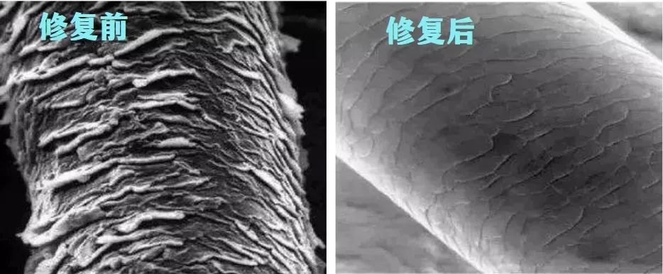 添加水解小麦蛋白,抚平打开的毛鳞片,发丝变得水润、光滑。