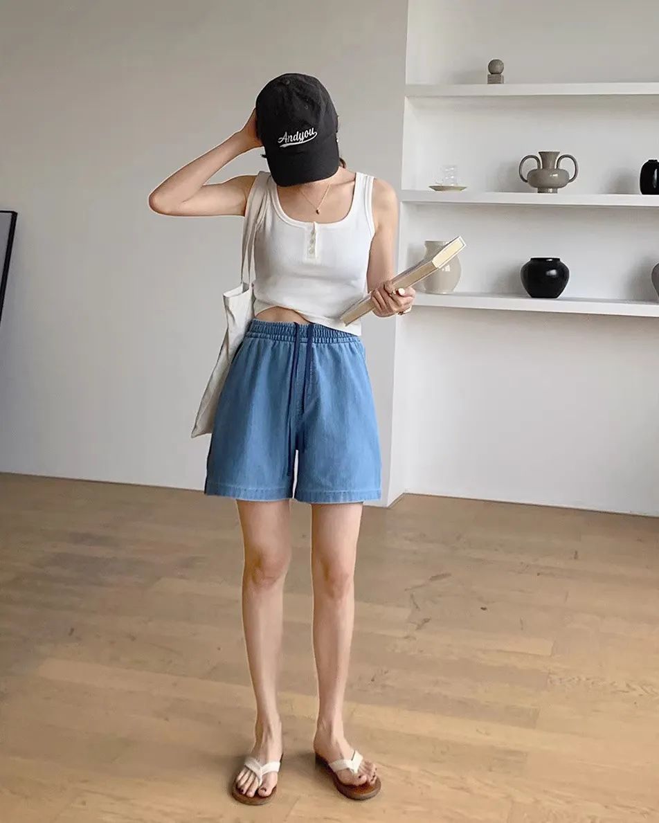 在所有裤装中,我个人更偏爱“牛仔短裤”,方便百搭还不容易出错。