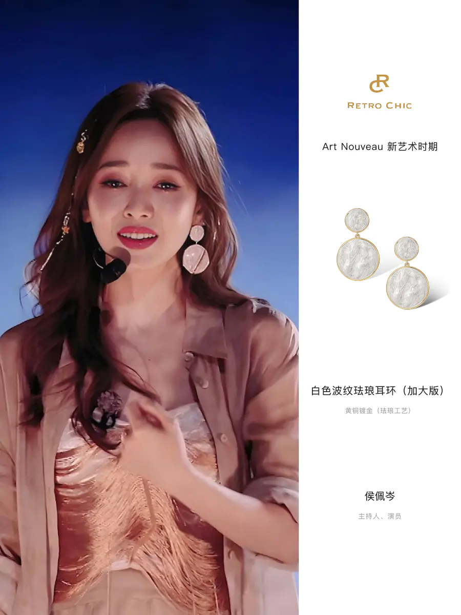 侯佩岑 x 白色波纹珐琅耳环