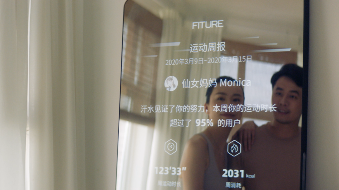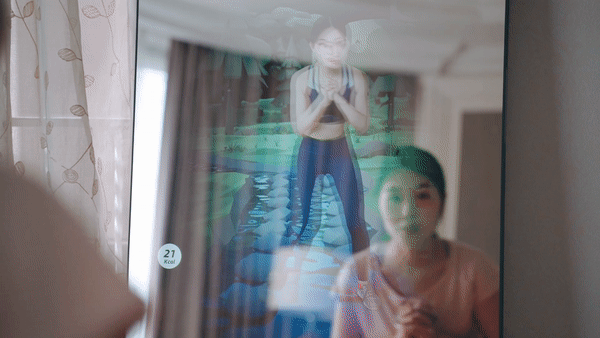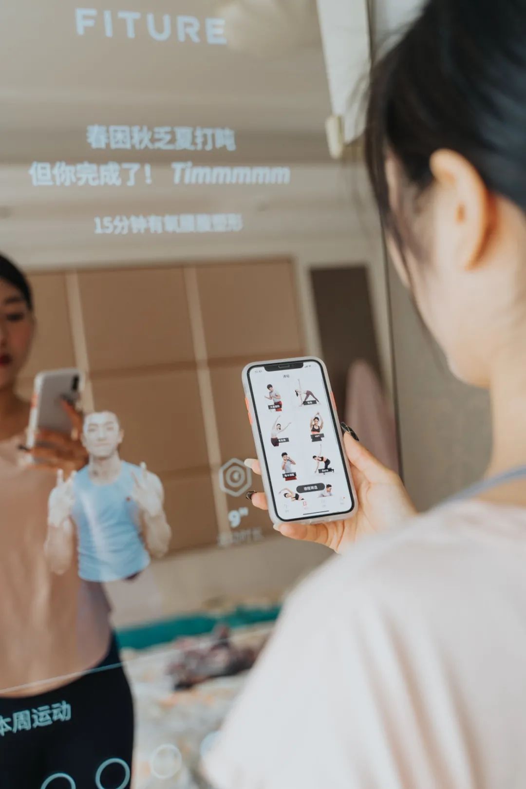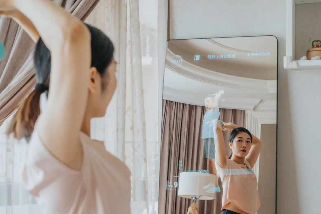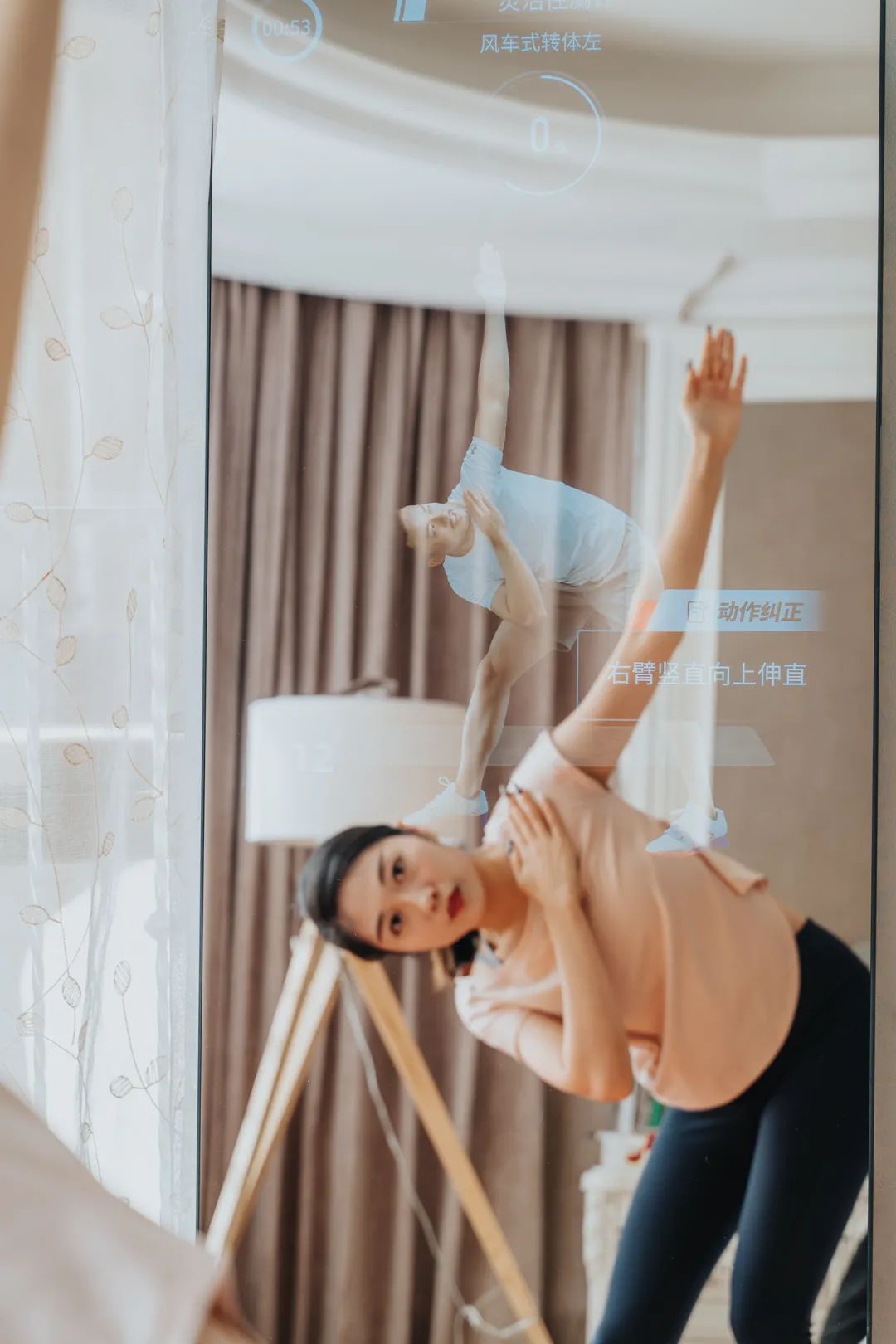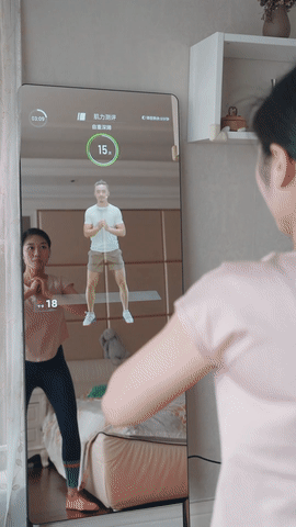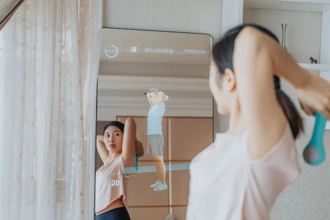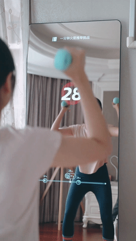所以选了这样子更像“家居品”的镜子作为载体,而不是又重又占地的动感单车、划船机。