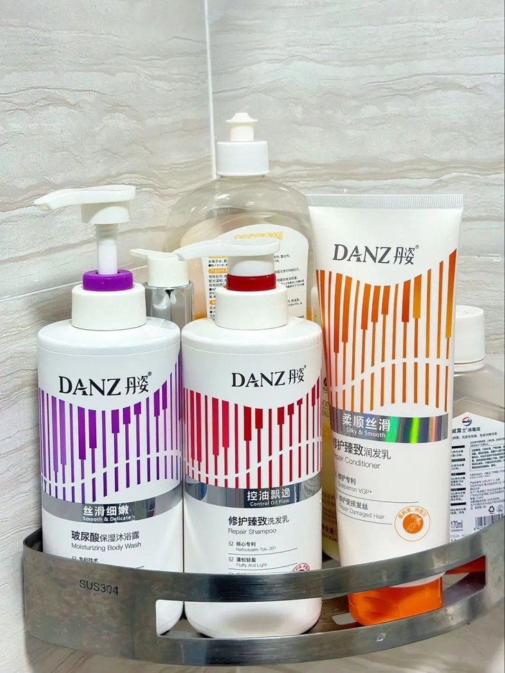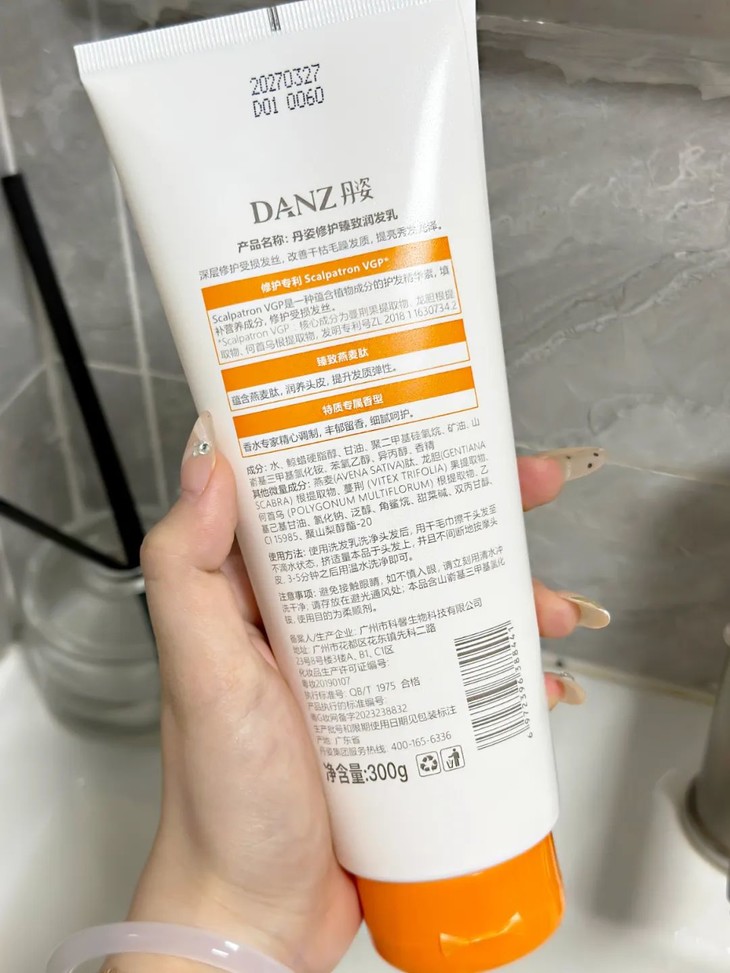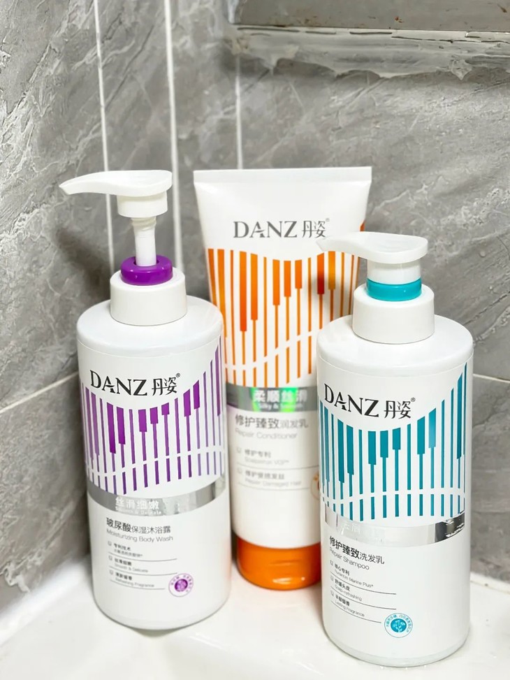 成分中还添加了华熙生物核心成份透明质酸钠原料,能在肌肤表面形成保护层,锁住水分。洗完之后可以看到水分蹭蹭蹭涨,日常护肤真的太需要了!用了一段时间,后背的痘痘、胳膊上的鸡皮都明显少了很多。就算不涂身体乳,也足够滋润,皮肤摸起来就像滑滑梯一样~丹姿修护臻致润发乳,能帮助修护受损毛鳞片,让秀发柔润亮泽,滋润干枯秀发,留香持久好闻,一瓶全家适用!臻取专利成分蔓荆果龙胆根何首乌,温柔养护秀发,呵护日常染烫后及各种发质,滋润发丝,改善干枯毛躁分叉现象。同时滋润头发表面干枯粗糙和缺水问题,秀发更显润泽光亮柔顺丝滑,抚平毛鳞片粘合分叉头发,软化头发让其垂顺,让头发更有光泽。它的质地很清透的乳白色,不粘手,在洗完头发后直接挤在头皮上轻轻按摩,头发柔顺又有光泽,一抹柔顺不油腻。