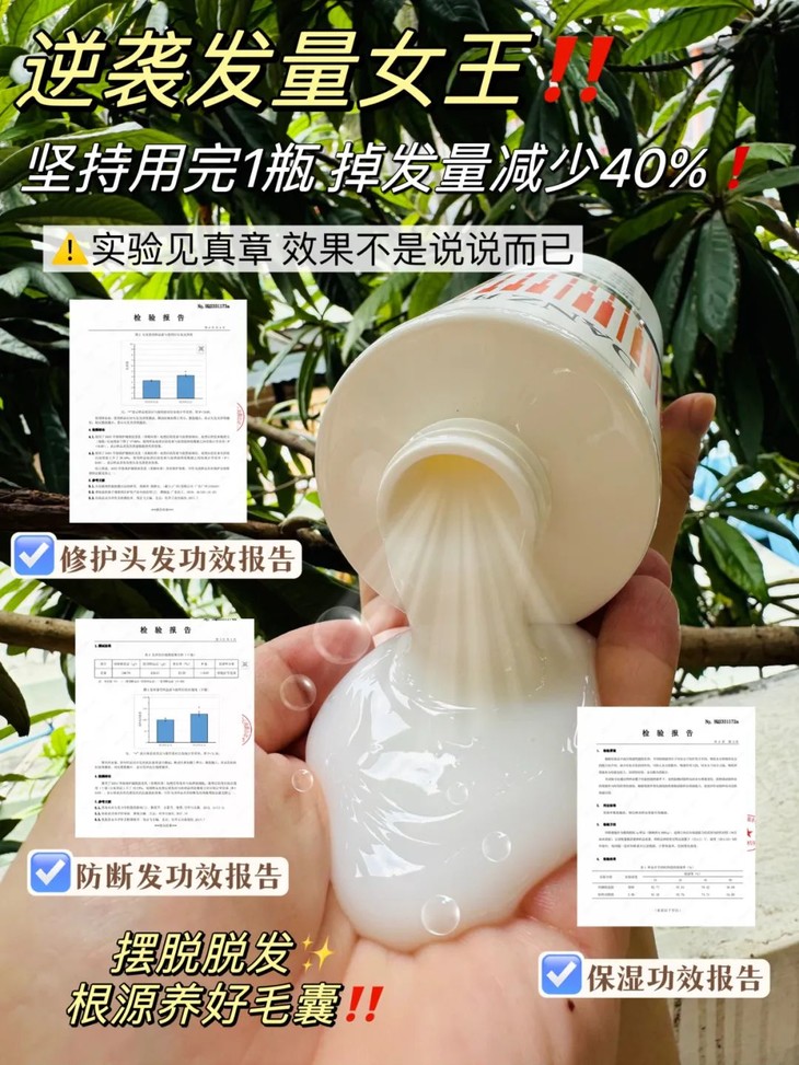 产品已通过防断发✅修护✅保湿功效测评✅功效口说无凭功效检测才最抗打!成分温和不刺激,在不破坏头皮发质保护层的前提注入养分,容易冲洗,不会给你的洗发体验带来任何负担。绵密细腻质地,轻轻一搓,泡沫丰富,有着令人称赞的清洁力,清洁的同时滋养头皮。如果你经常烫发、染发、头发容易打结受损严重,头皮容易紧绷、敏感还痒的,选对它就对了!含有华熙生物核心成份透明质酸钠原料,用料不惜成本,很适合干燥皮肤。