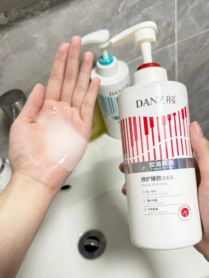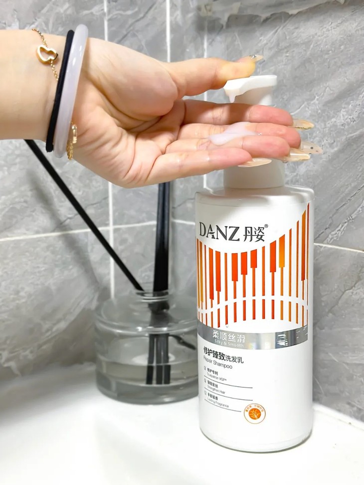 同时也温温柔柔地保护着头皮和头发,洗完很干净、却不拔干。洗发水的质地顺滑易推开,轻轻一推就有丰富绵密的泡沫,上头轻轻柔柔的很舒服就像在做spa一样。坚持用下来不止是去屑的效果很好,而且2-3天不洗头也很蓬松清爽。重点是,其他清洁力强的洗发水,虽然也能把头皮油脂洗干净,却很少照顾到发丝。这瓶洗完发丝却是柔顺有光泽的!不会涩/干/糙!建议所有爱长头皮屑、头皮发痒的都去用!这才是洗发水届真正的天花板,能从干枯稻草头变成氛围感绸缎发,效果堪比线下沙龙k-k的蛋白矫正!你是否曾经为头发又少又塌又不干净的头发而烦恼?你是否渴望拥有一头浓密、光泽的秀发?!丹姿修护臻致洗发乳(柔顺丝滑) ,能够有效清洁头皮油脂污垢、内韧外柔多重养发、补充发芯流失角蛋白,从外抚平发丝毛鳞片,打造丰盈蓬松感。添加面霜级别成分(何首乌+燕麦肽)使秀发富有光泽,修复损伤,补充秀发水分,水润更蓬松。另含植物精粹而成的沙棘籽油,密集补充头皮和发丝营养与水分。好像自带天然蓄水池,给肌肤注入源源不断动力水能量,调整到适合头发生长的状态,头发自然又亮又有光泽,还不容易掉。除了滋补发丝营养外,最主要的是能搞定干枯缺水等受损发质!洗头的时候可以搭配硅胶按摩梳一起使用,可以减少对头皮的伤害,像干枯沙发、烫染受损发、换季毛躁发等等,更加坚韧发丝。