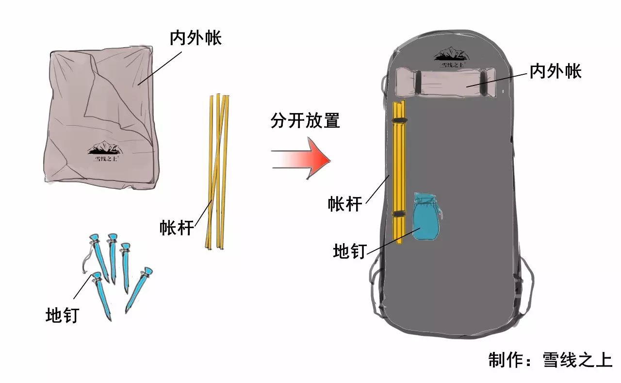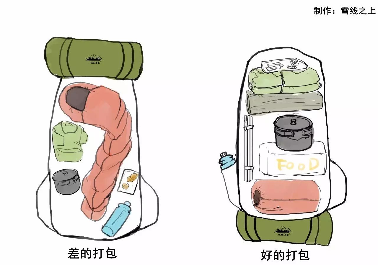 睡袋收纳先排气,帐篷收纳要分开,锅中空间要利用。