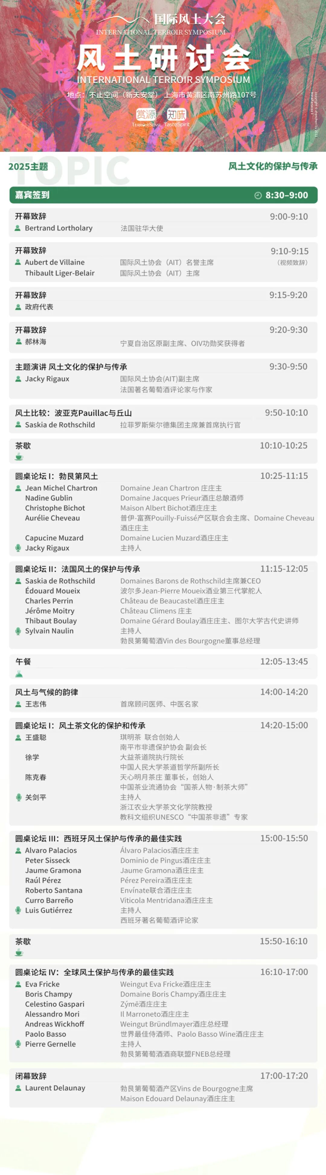 今年的风土研讨会将于11月20日周四(9:00 - 17:30)在不止空间(新天安堂)举行,将以「风土文化的保护与传承」为主题并再次全新升级。今年我们非常荣幸地迎来了再创新高的豪华专家嘉宾阵容。众多行业领袖、头部风土酒庄的庄主以及多位领域国际专家,他们将亲临现场,与大家分享他们关于风土哲学的真知灼见!