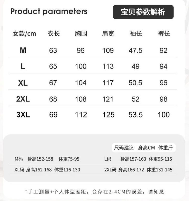 75到145斤的姐妹都可根据尺码表选择适合自己的尺码