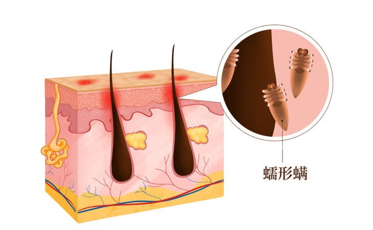 寄生在皮肤毛囊里的螨虫会不断地繁殖、游走,并往毛囊深处钻,刺激皮肤产生瘙痒感。