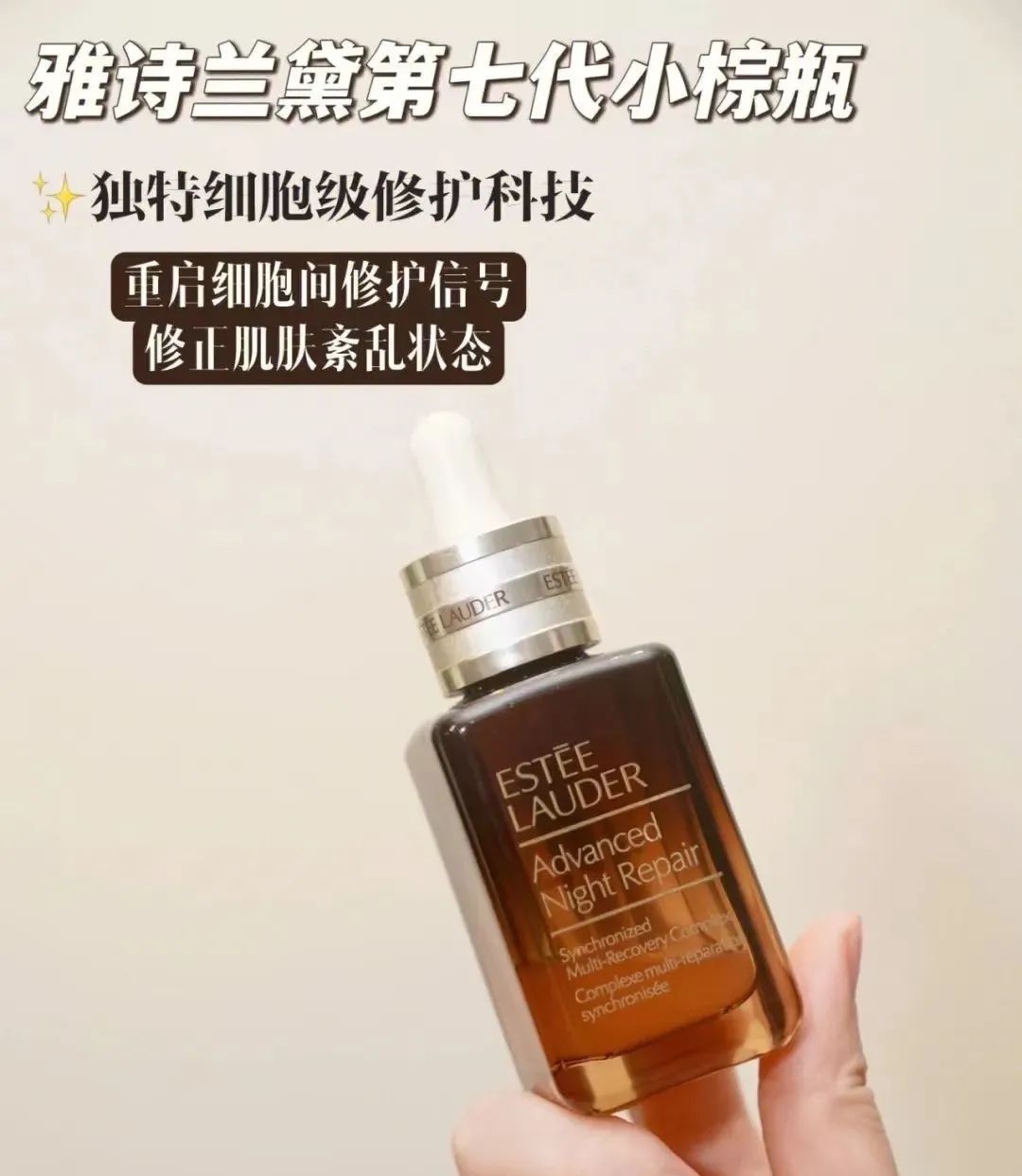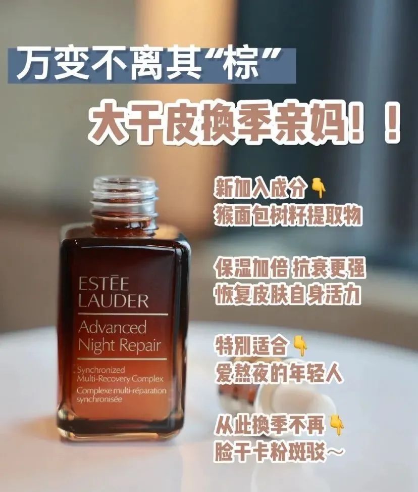 比如这款超热门,几乎10个女生里有9个都用过的——雅诗兰黛小棕瓶精华。