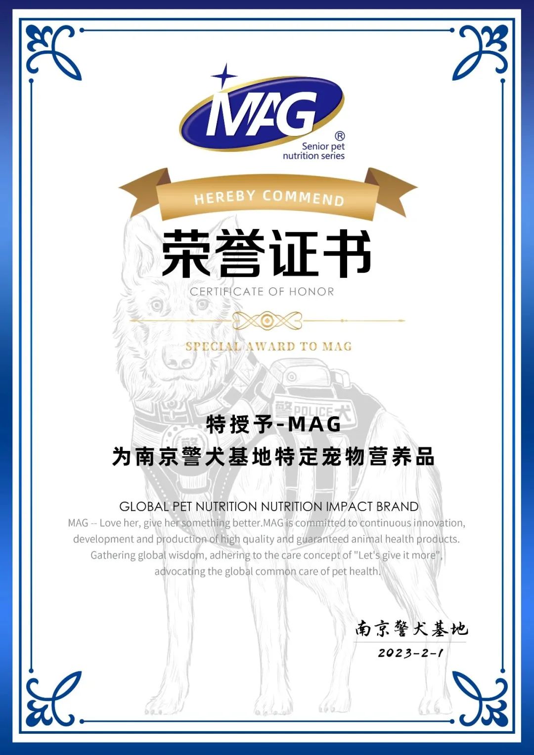 警犬基地指定宠物营养品品牌