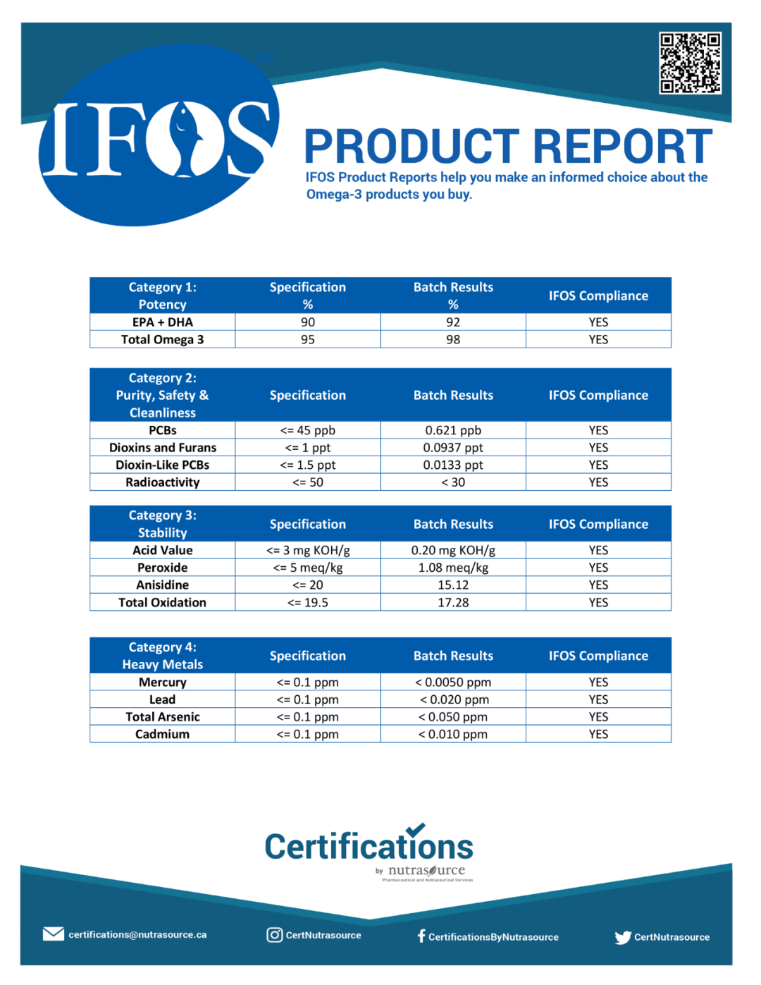 产品Omega-3含量实测高达98%
