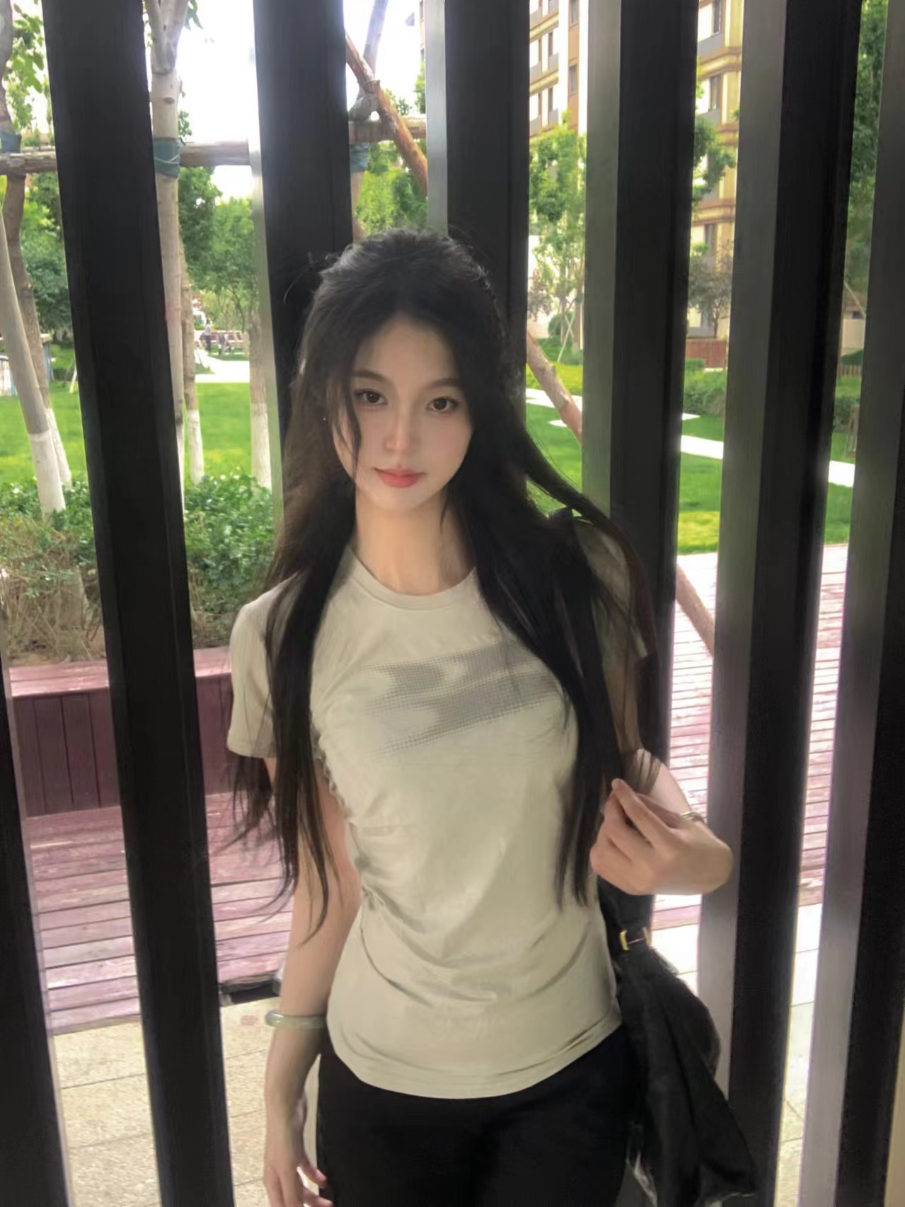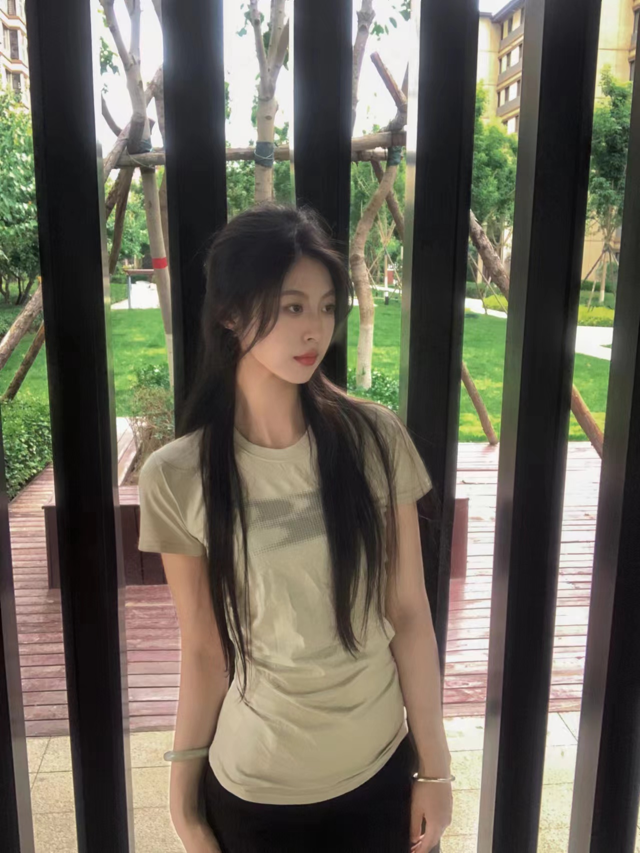 凉感新配色褶皱修身TEE