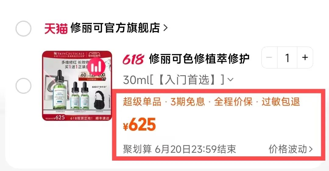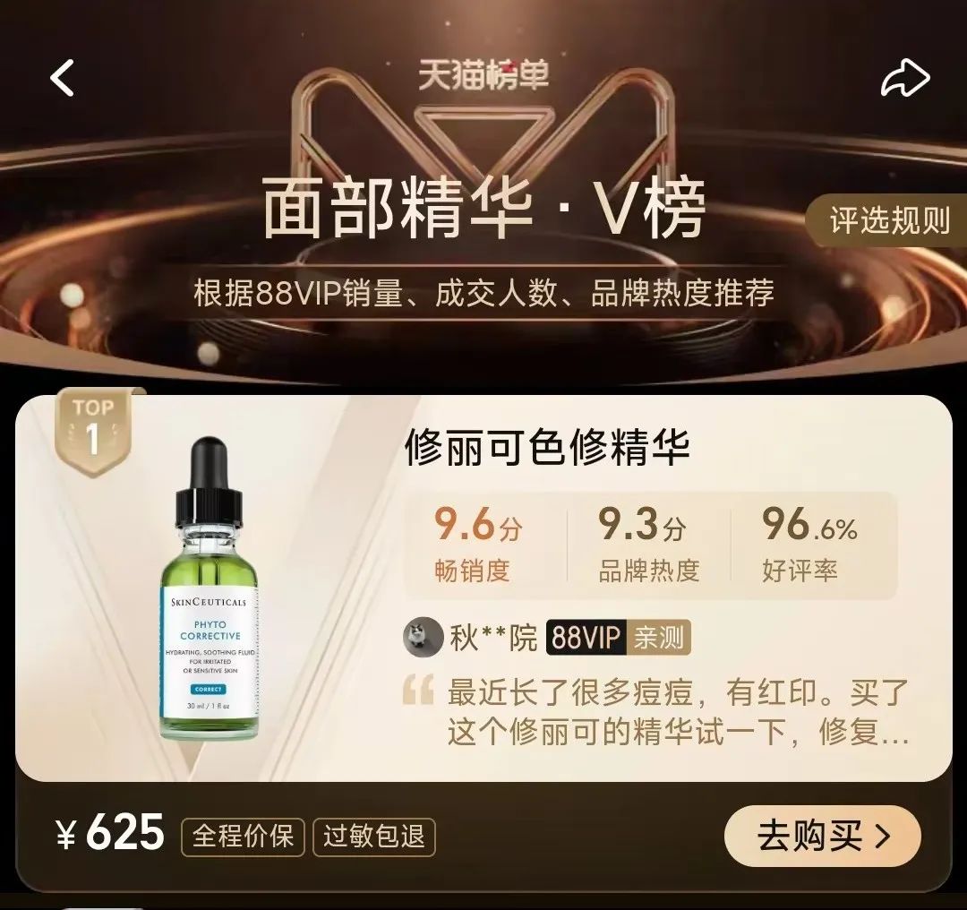 天猫旗舰店活动价625/30ml