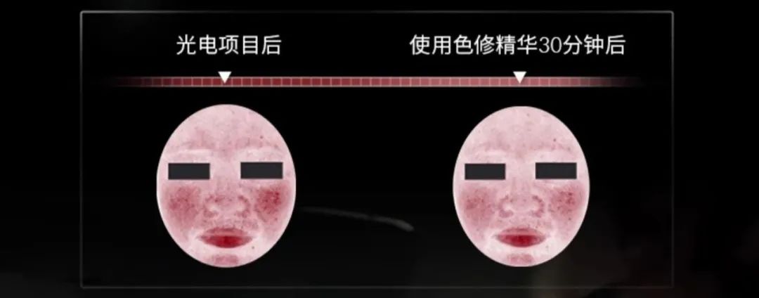 可以看下使用色修精华前后的对比图,脸部温度一下子就降下来。
