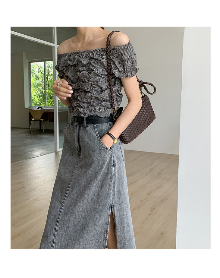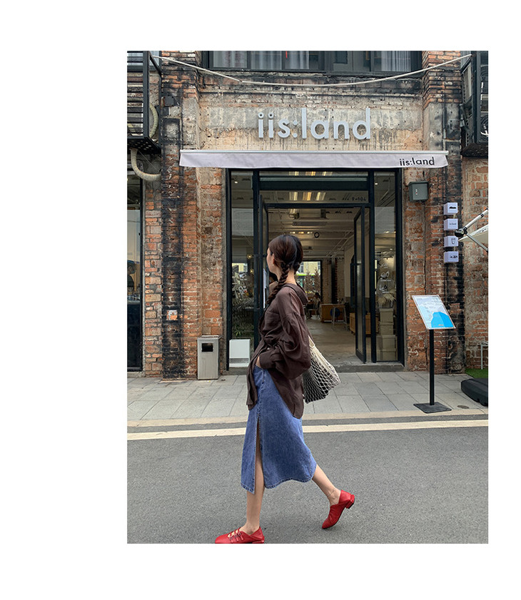 韩版复古a字侧开叉牛仔裙中长款半身裙
