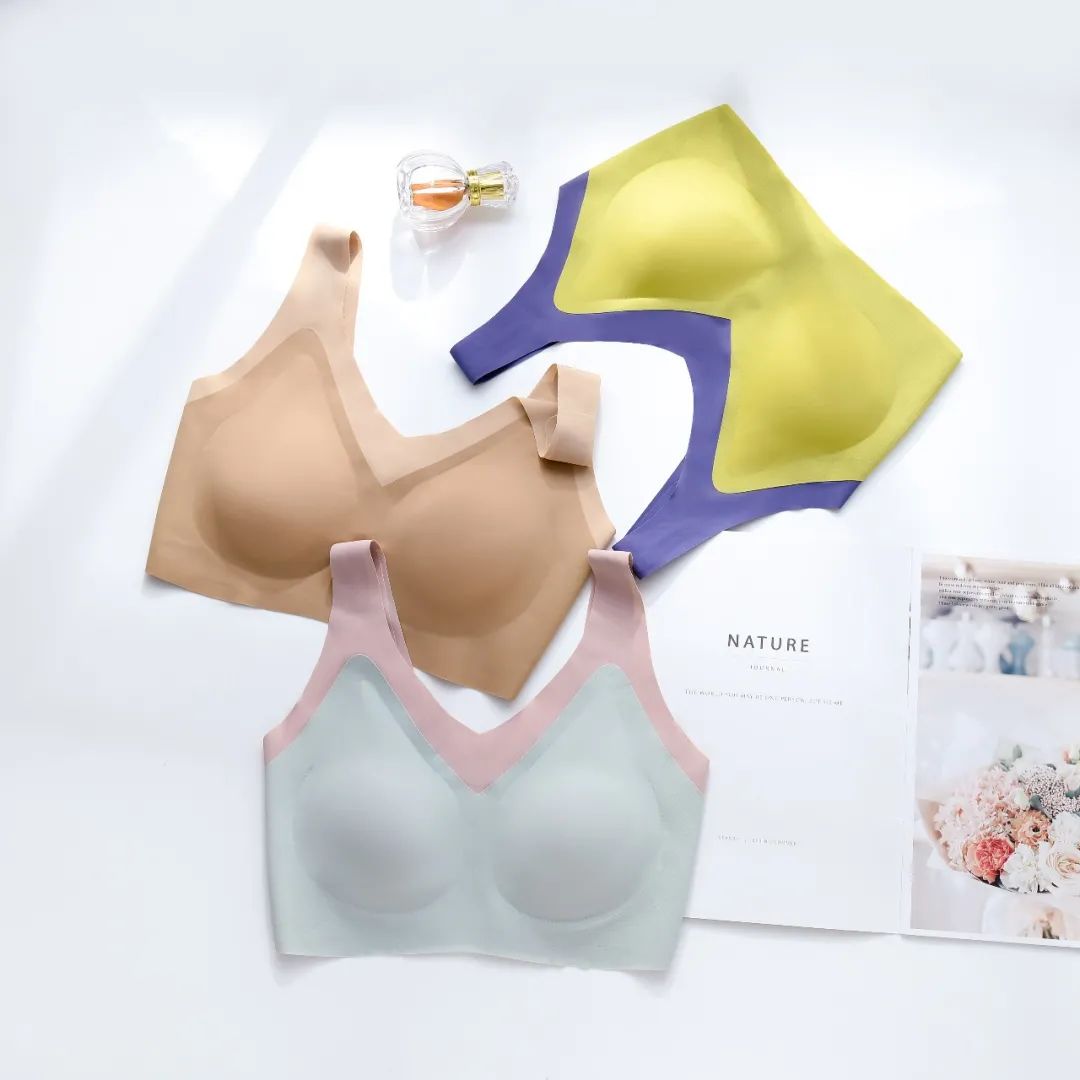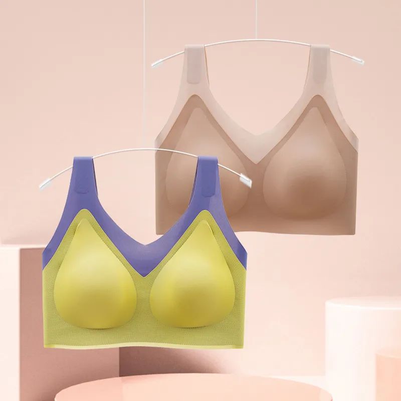 比如这款巨舒服、无钢圈聚拢又挺翘的闺蜜撞色乳胶棉内衣: