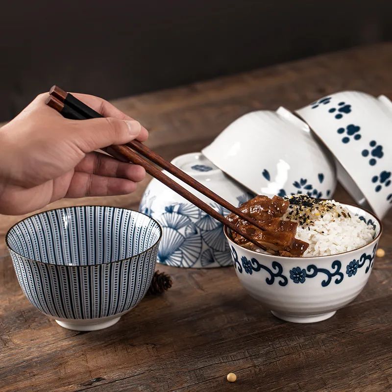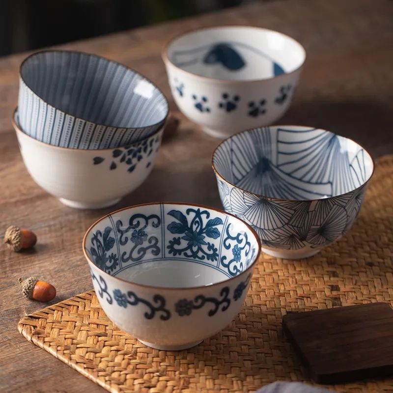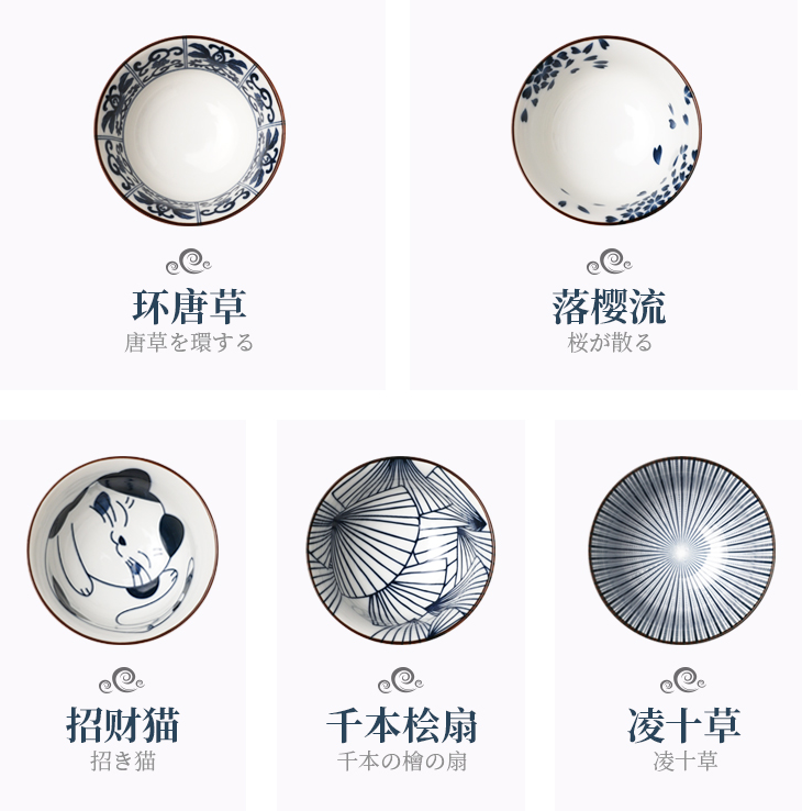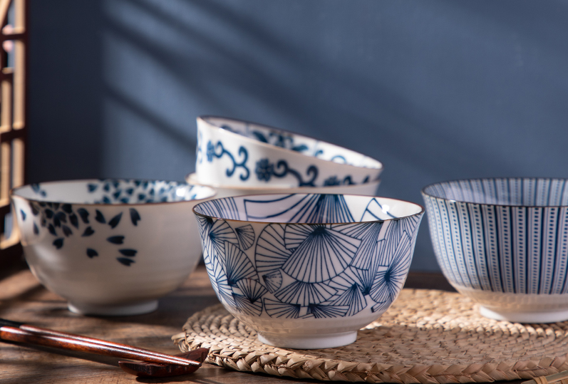 选的是「和风蓝绘系列」套碗,蓝染是日本瓷器最经典的纹饰。