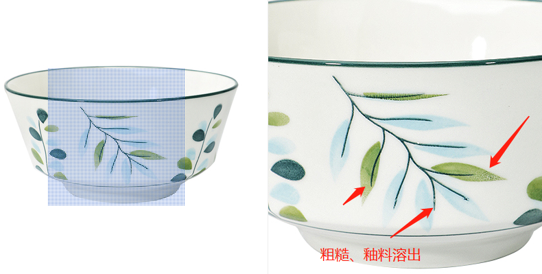 接触食物的碗内部、碗边缘,都不建议用釉上彩。但很多便宜的超市货,通体用的釉上彩。