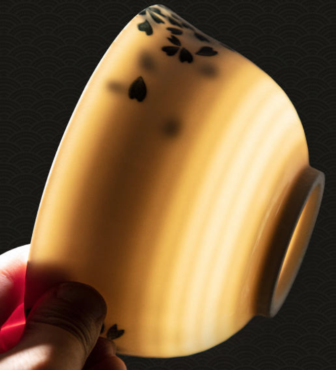 碗体透光感极强,光泽温润,几乎没有杂质。