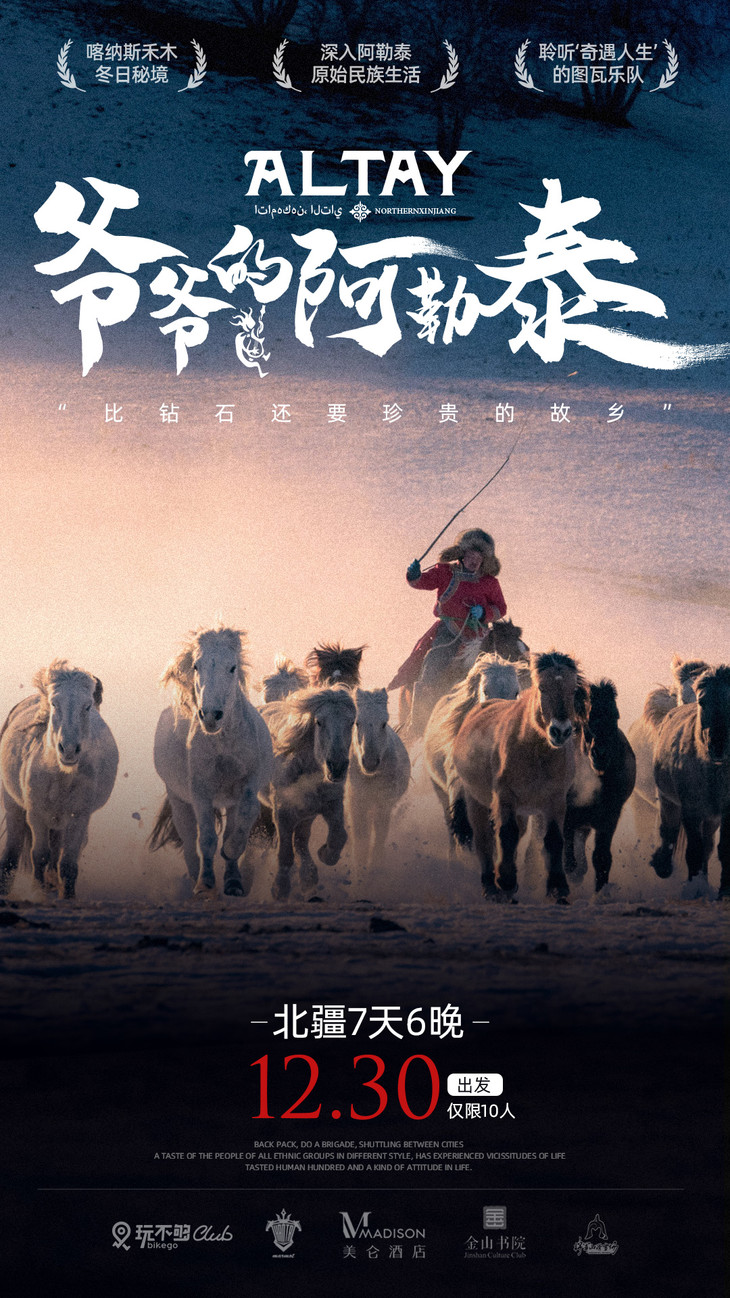 在很多年轻人都在走出去时,他们选择了留下来守护家乡的文化。到处走访挖掘、整理记录大量的民间原生态音乐,让濒临失传的歌曲和乐器,再次响起悦耳的声音。《奇遇人生》第一季中,阿雅和范晓萱就来到喀纳斯,与旱獭乐队一起触摸自然和原始,追寻自己心中的旋律。这里的音乐,没有耀眼的聚光灯,没有昂贵的音响设备,只有山间的风、溪谷的水,和老人浅浅吟唱的声音。你可以见识到从未听过的民族乐器:楚尔、托布秀尔、图瓦鼓,还有神奇的呼麦。我们深深被旱獭的精神与音乐打动,这也是《爷爷的阿勒泰》线路的初心所在。我们与志同道合的旱獭乐队深度合作,想带你一起去和他们交朋友,不仅要听动人的现场live,还要住在他们喀纳斯村中的神仙山居;当窗外下着大雪,我们一起和乐队成员围坐在火炉边,畅谈人生之歌!虽然我们可能听不懂旱獭乐队歌中的语言,但当你在现场时,一定可以连接到他们想通过音乐表达的情感。听了音乐,我们还想带你去深入了解生活在这里的原始民族。在阿勒泰近一半的人口都是哈萨克族,他们的先民很早就生息在新疆北部,与历史上的游牧部落突厥、乌孙、回鹘等有一定的渊源。有人把哈萨克解释为“战士”、“自由的人”,他们虽然生活在新疆,却是实实在在的游牧民族,很擅长骑马。我们找到了世代生活在这里的哈萨克牧民,带你去围观一场热闹盛大的赛马刁羊运动会,感受他们在马背上的勇猛、顽强和机智!再带你去亲自挑选一匹中意的阿尔泰马,哈萨克牧民手把手教你怎么骑马。我们一起去到一望无际的茫茫雪原上骑马穿越吧!同样生活在这片土地上的,还有一个更加传奇、隐秘的民族,他们就是图瓦人。在中国的图瓦人仅有阿勒泰地区的2500多人。因为人口稀少,他们的民族、文化都在渐渐被外界遗忘……图瓦人的祖先来自于西伯利亚地区,他们很会找地方居住,大多选择既有高山树林,也有河流湖泊,动植物种类丰富多样的真·世外桃源。再分享一个冷知识:据考证,最早发明滑雪板的就是新疆阿勒泰的图瓦人,因此阿勒泰也被称为“人类滑雪起源地”。(当然,我们行程里滑雪也是不会少的~)这个神秘族群的还有许多资料我甚至看都看不懂,更多鲜活有趣的故事就让我们一起去到阿勒泰,听听他们族人的诉说吧。
