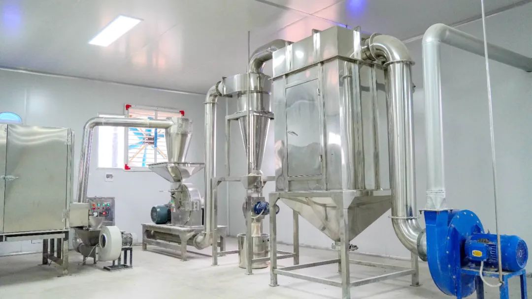 Δ搅拌好的配料进入粉碎机,谷物原料粒粒真实