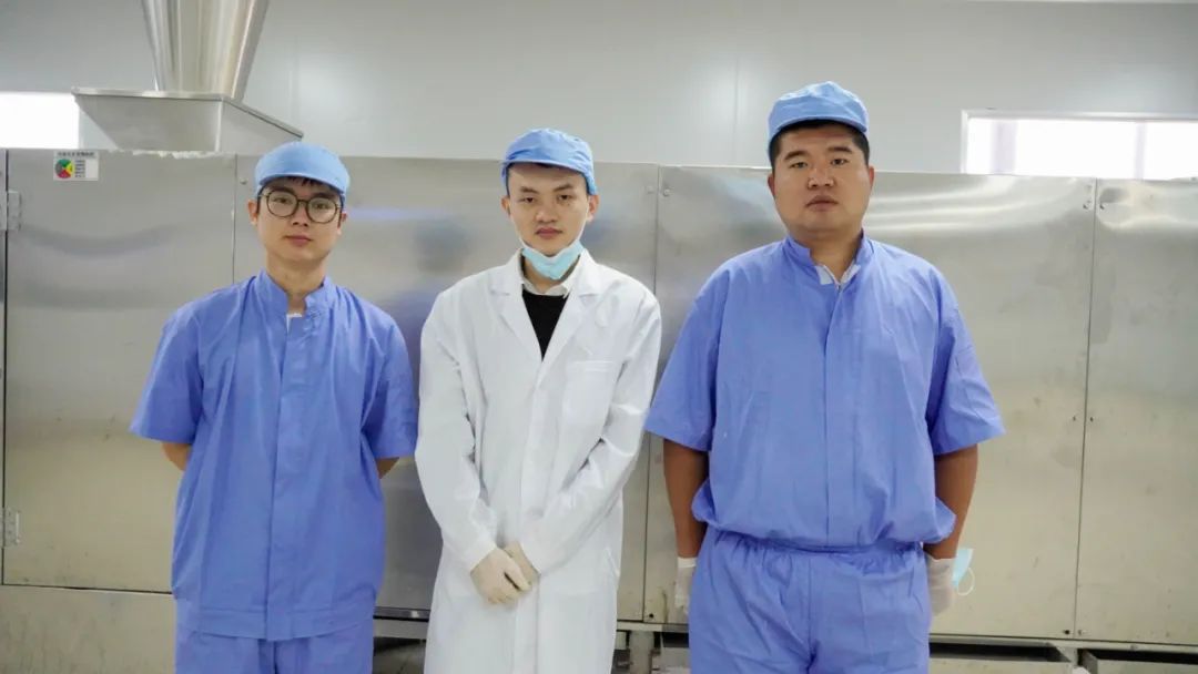 Δ代餐粉车间的小伙伴,从左到右依次为国胜、蔡江、鹏飞