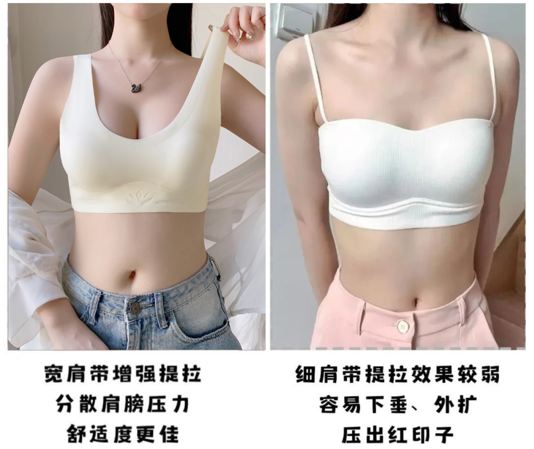 不会像细肩带款一样容易勒出红痕来,穿久了也不会有任何酸痛感!