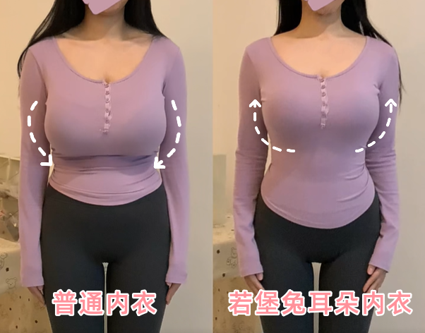 不信你们看,当我穿上这款兔耳朵内衣时,原本下垂的胸部立马挺起来了。