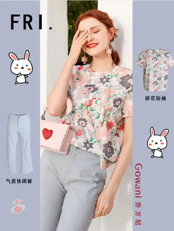 周五,晚上要happy!穿着一定要休闲舒适但是也要精致正式,设计感十足的印花短袖搭配上浅色宽松牛仔裤,舒服又时尚!
