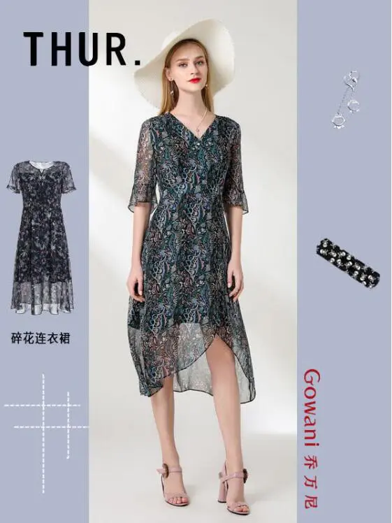 周四,连衣裙是成熟女人的标配,忧郁的深蓝色与神秘的小印花,飘逸的薄纱和精致V领,性感撩人。