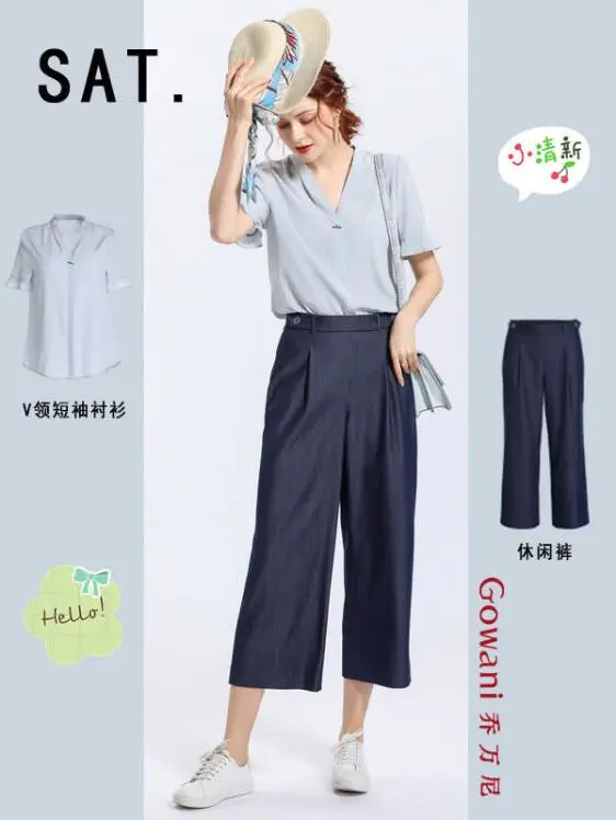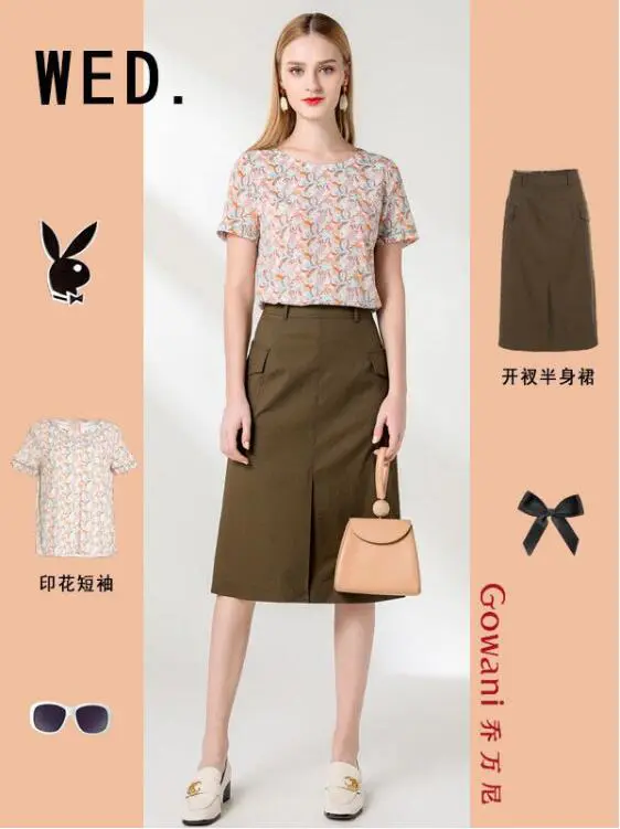 周三,职场不能少了气场!少女气质和女王气质要随意切换,深色系的开叉半身裙或者浅色九分裤搭配上禁欲系碎花短袖,高级又迷人。