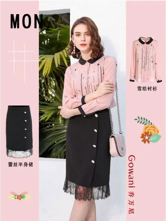 周一,一定要打起精神,雪纺衬衫的温柔搭配上修身蕾丝半身裙,独特的甜美职场风让你元气满满!