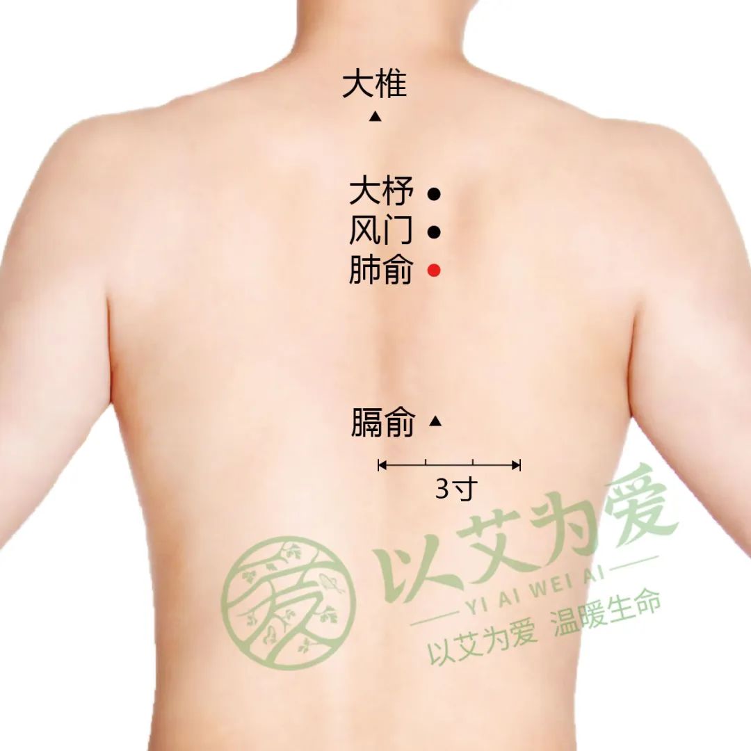 肺俞穴,肺俞穴位于背部,在第3胸椎棘突下,旁开1.5寸。
