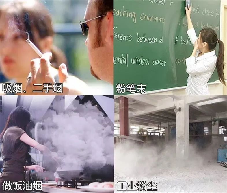 还有很多二手烟、烹饪油烟、粉尘等等,