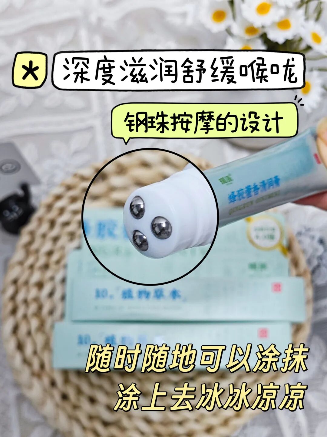 清爽不油腻,钢珠按摩设计,深度滋润舒缓喉咙