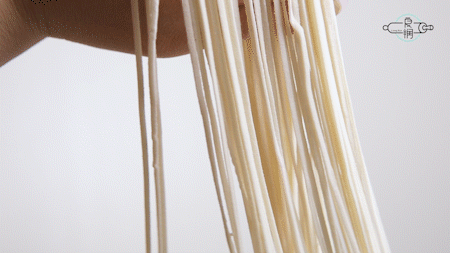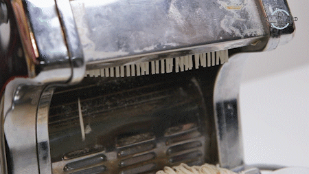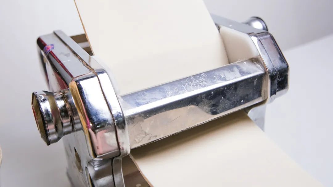 因为是用压面机操作,所以面团相对来说,会是有些硬,如果没有压面机,用擀面杖来操作的话,食材中水的用量可增加至150克