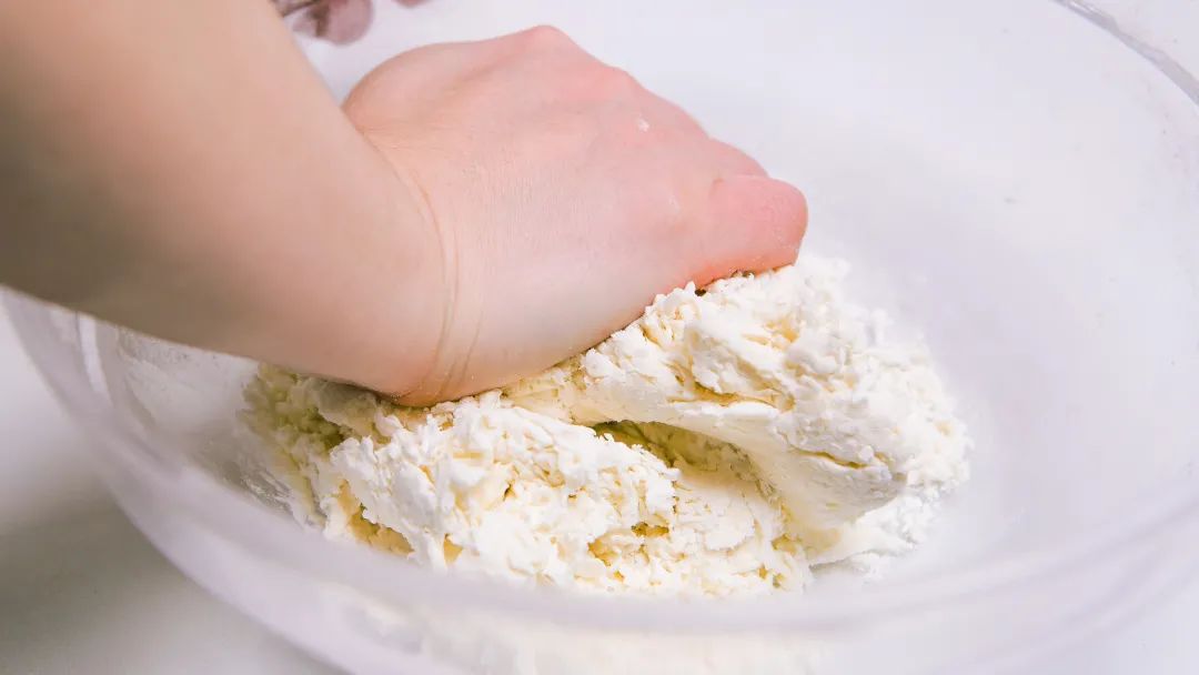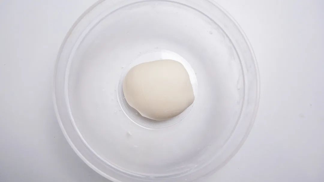 用手按压成团,把它揉制成一个光滑的面团,无需醒发