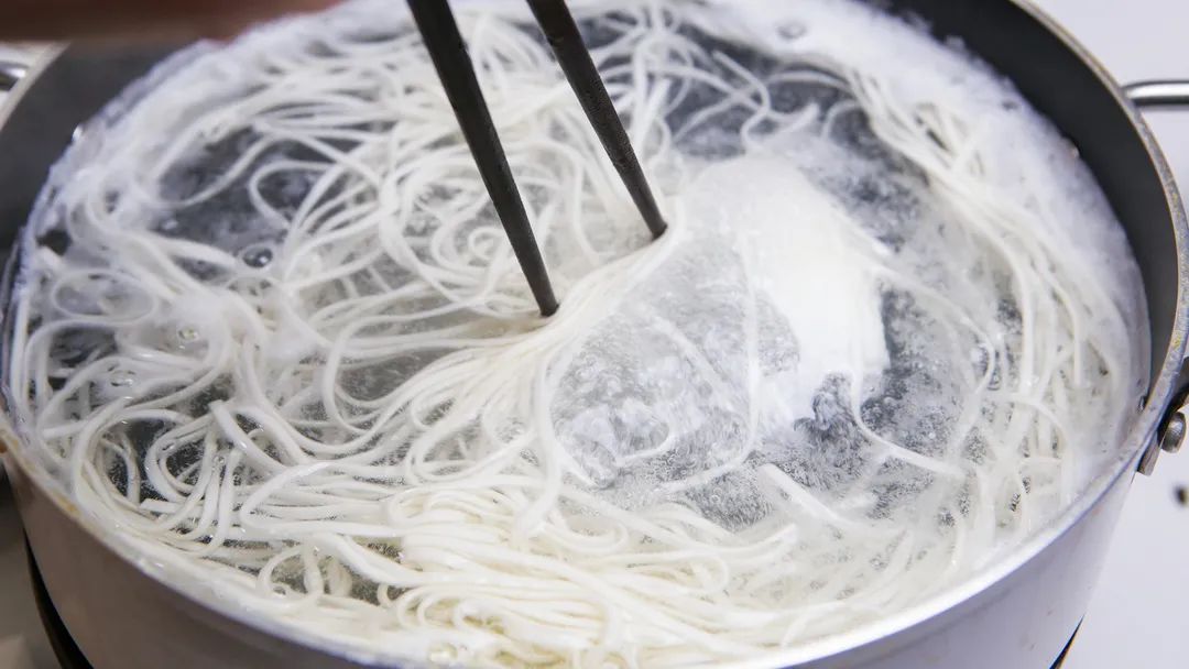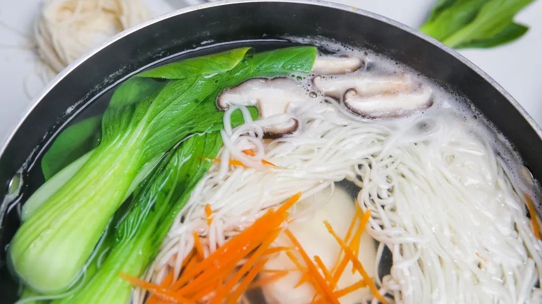 然后放入面条煮2-3分钟,最后加入切好的配菜,煮一下,盛入碗中