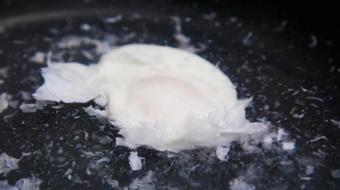 准备煮面,锅中倒入适量水,水烧开后,加入鸡蛋,煮定型后捞出备用,这样的荷包蛋会流心