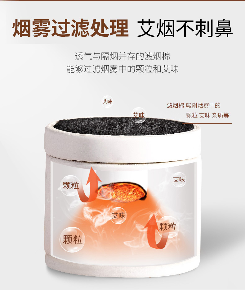 采用筒型悬空设计,艾柱燃烧释放的能量被聚集在筒内,“点对点”的作用艾灸更佳