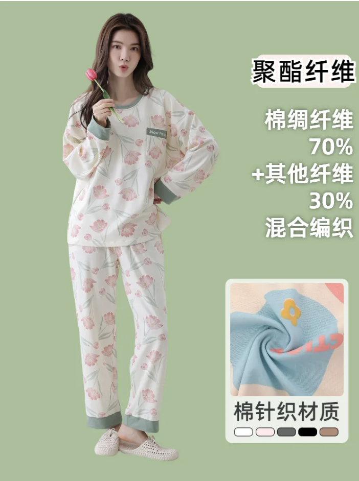 好的面料会越洗越软糯!这款居家服虽然是聚酯纤维,但它不是一般的聚酯纤维,面料成分由棉绸纤维70%+其他棉纤维30%混合编织。