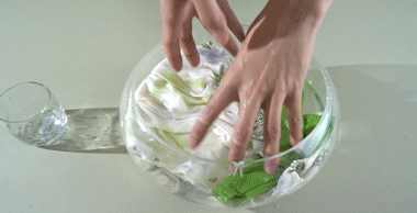 水洗不脱色,做了固色的效果,浸泡半小时再捞出来,水还是干干净净的。