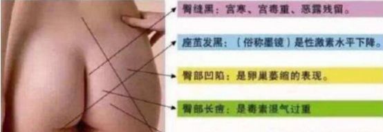 如果臀部寒凉,盆腔内、腹股沟堆积很多瘀堵的毒素病邪,会导致盆腔积液、附件炎、阴道炎等炎症。臀部受寒时,会使臀部经络收缩,出现痛经,月经不调,血色暗、血块等问题。