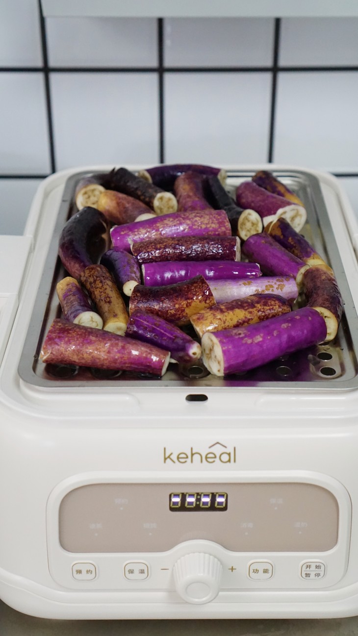 3、茄子放入蒸锅中,选择“速蒸模式”蒸7分钟