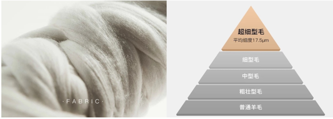 这种经过特别工艺处理后的羊毛纱线堪称金字塔顶纱线,成本高昂,是众多大品牌争相追逐的面料,摸起来像婴儿毛发一样软糯细腻。