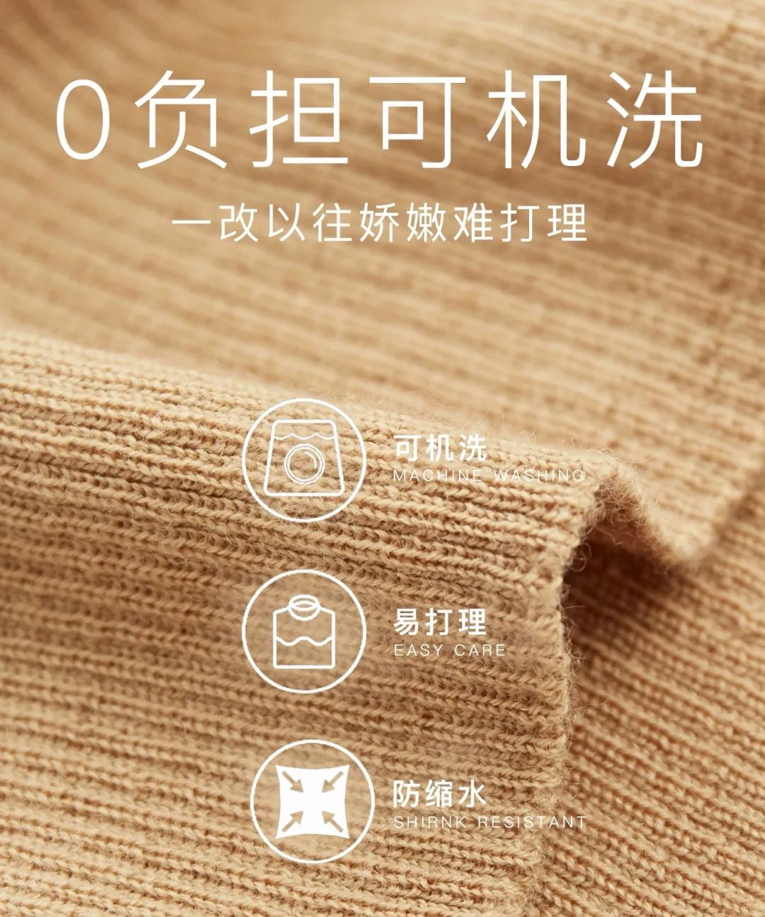 摸起来有羊绒的质感,却一点不娇气,直接套上洗衣袋丢进洗衣机即可~