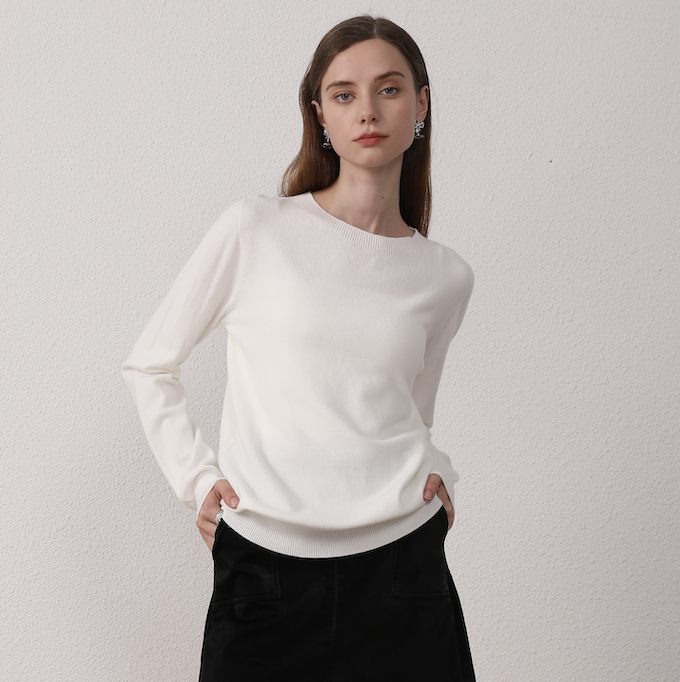 买过很多花里胡哨的毛衣,只有圆领纯色的羊毛衫最能体现质感,衣柜里总要有几件不同颜色的圆领羊毛衫,来百搭整个冬天的造型。